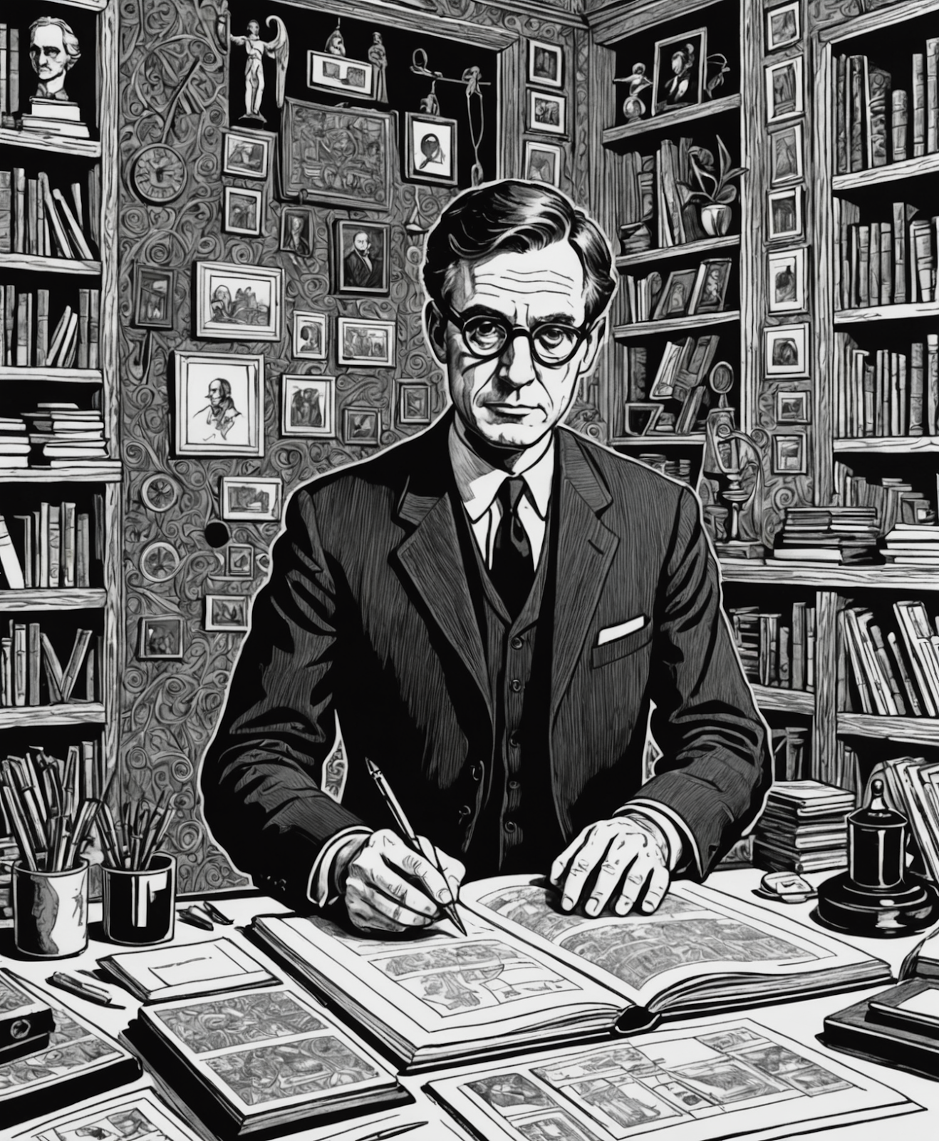 Man scripts fate amid tomes in monochrome hall on Wednesday, February 11, 2026 Get link Facebook X Pinterest Email Other Apps Technique: etching Artist: Gustave Doré Keywords from the news: trial, addiction, tech, epstein, police Feel free to download the picture. Print on A/4, portrait mode, B/W. For non-commercial use only.